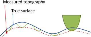 A sketch showing the measured surface height along with the true surface height