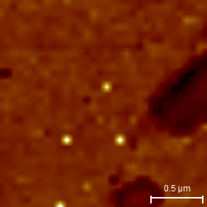 Going hand in hand with the Maximum Adhesion Force map this is a map of the corresponding separation points. This is most interesting when the adhesion is caused by molecules which will stretch before bond breaking. Then it is possible to get a map of the molecule lengths when the strongest bond is yielding. This can for example be used for investigating which binding sites is used for binding a specific molecule either to the surface or to the tip.