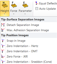 Note, that not all force volume images will have the surface topography reflected in height axis of the force curves. In such cases all force curves will start at zero height. Use the “Add Topography” function for adding the topography from the corresponding height image to the data before calculating the Equal Deflection Image.